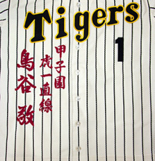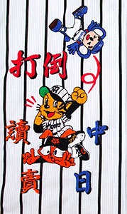 阪神タイガースグッズと刺繍「イエロー・ユニ」の携帯用バナー