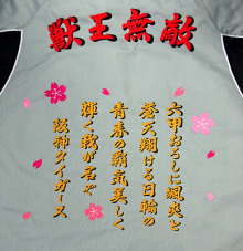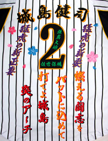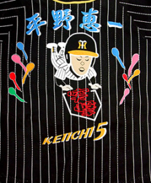 阪神タイガースグッズと刺繍「イエロー・ユニ」の携帯用バナー