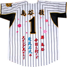 阪神タイガースグッズと刺繍「イエロー・ユニ」の携帯用バナー