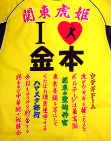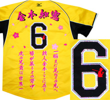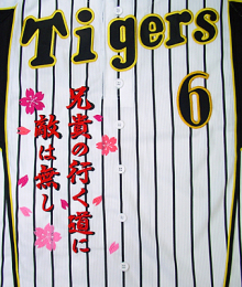 阪神タイガースグッズと刺繍「イエロー・ユニ」の携帯用バナー