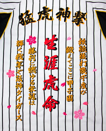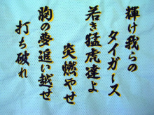 阪神タイガースグッズと刺繍「イエロー・ユニ」の携帯用バナー