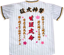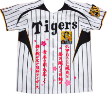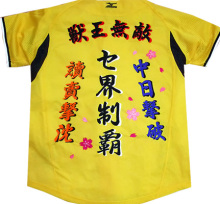 阪神タイガースグッズと刺繍「イエロー・ユニ」の携帯用バナー