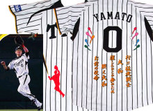阪神タイガースグッズと刺繍「イエロー・ユニ」の携帯用バナー