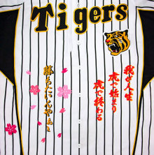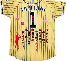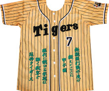 阪神タイガースグッズと刺繍「イエロー・ユニ」の携帯用バナー