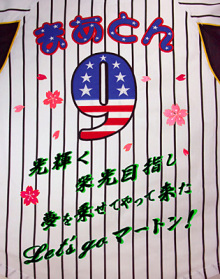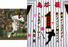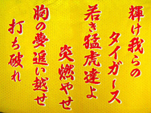 阪神タイガースグッズと刺繍「イエロー・ユニ」の携帯用バナー
