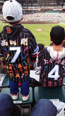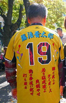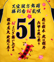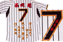 阪神タイガースグッズと刺繍「イエロー・ユニ」の携帯用バナー