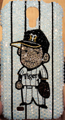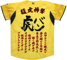 阪神タイガースグッズと刺繍「イエロー・ユニ」の携帯用バナー
