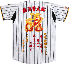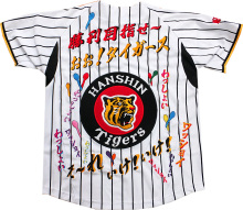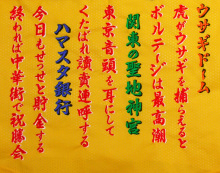 阪神タイガースグッズと刺繍「イエロー・ユニ」の携帯用バナー