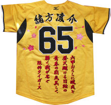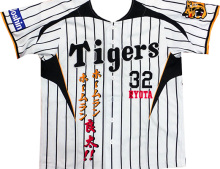 阪神タイガースグッズと刺繍「イエロー・ユニ」の携帯用バナー