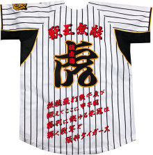 阪神タイガースグッズと刺繍「イエロー・ユニ」の携帯用バナー