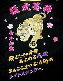 阪神タイガースグッズと刺繍「イエロー・ユニ」の携帯用バナー