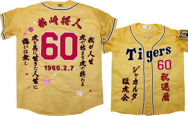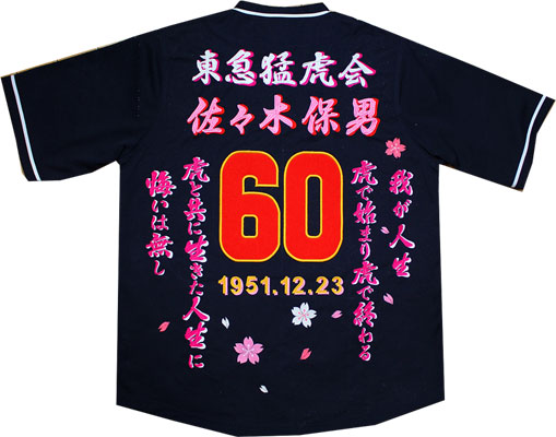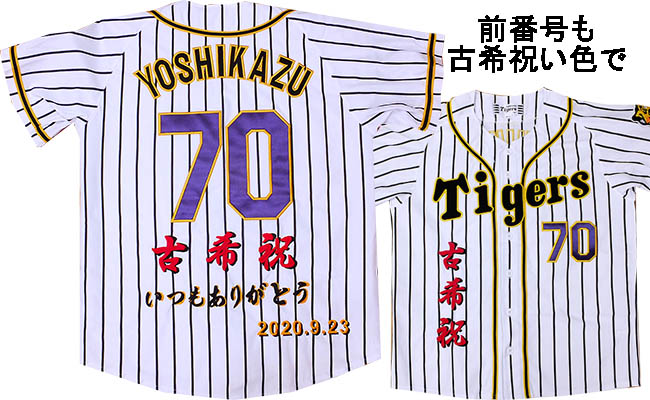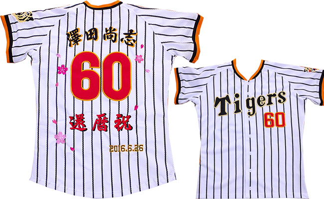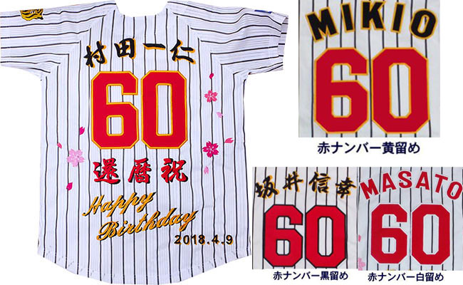 阪神タイガース刺繍・還暦・古希・長寿祝いユニフォーム刺繍制作例