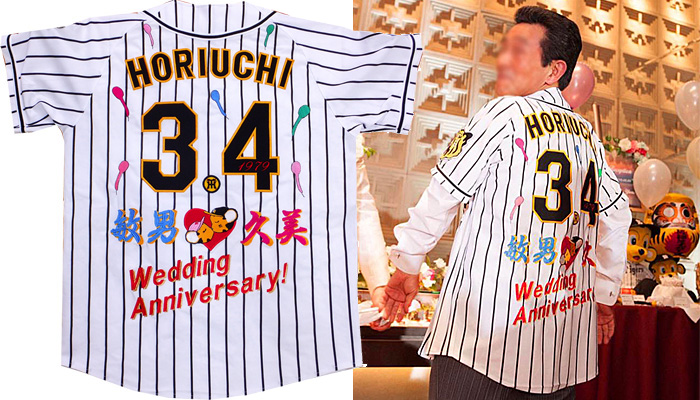 各種お祝いなど、大切な記念日に、オリジナルメッセージ刺繍をユニフォームに演出いたします。