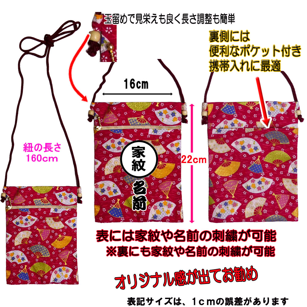 お祭り用 ポシェット 縦型 肩掛け 家紋・ネーム刺繍対応可能(お祭り用品 巾着 日本の祭り)