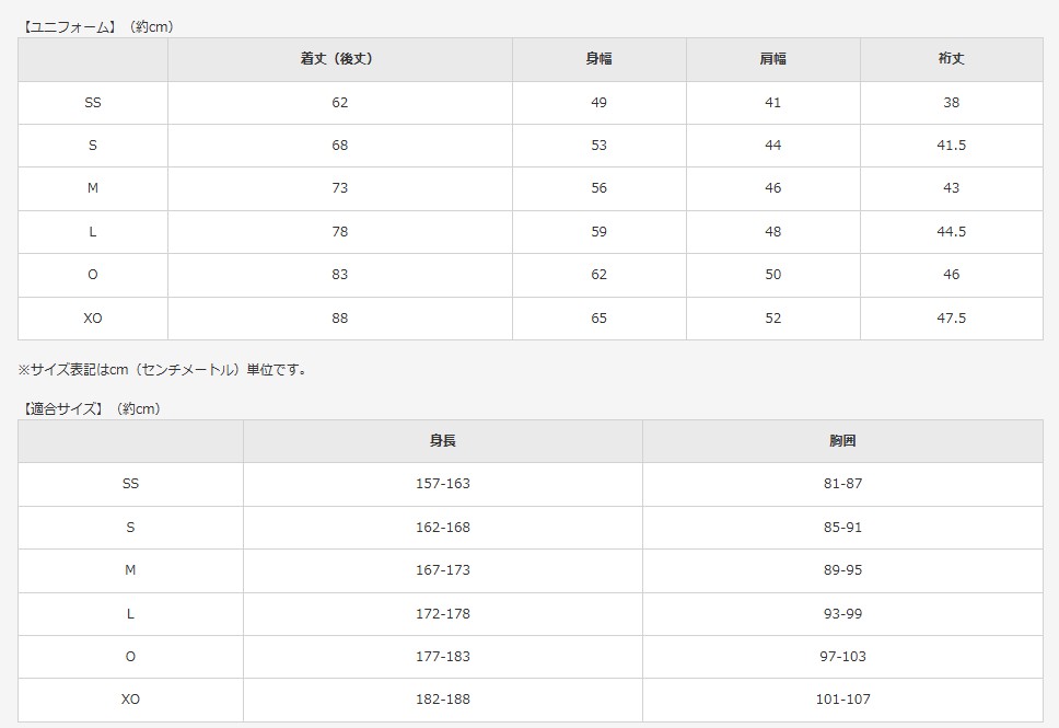 | サイズ | 身丈(後丈) | 身幅 | 肩幅 | 裄丈 | 適合身長 | 適合胸囲 |