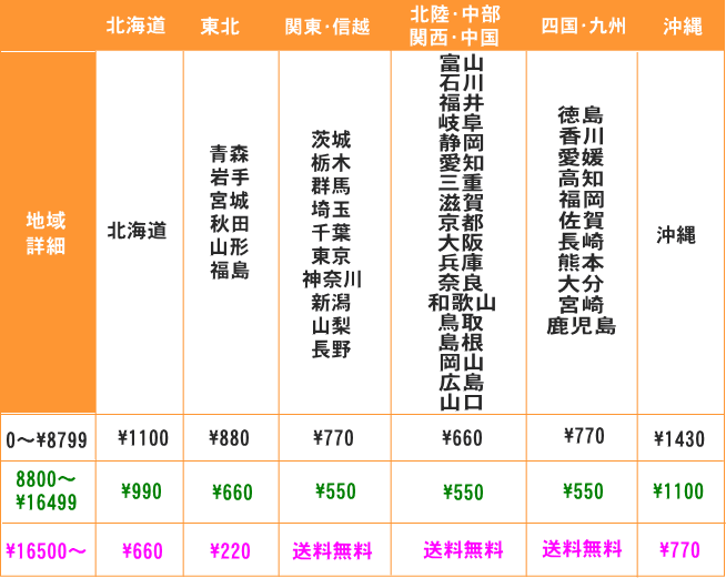 総合計¥16500円以上(10%税込み)は、送料サービスです。(一部地域を除く)