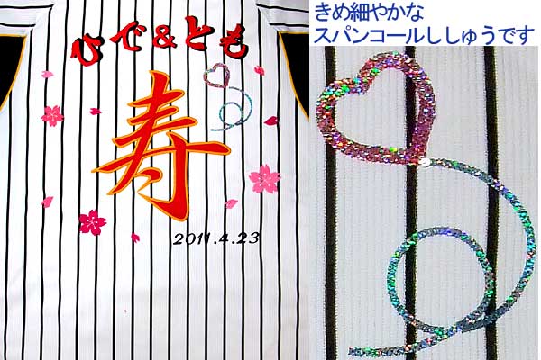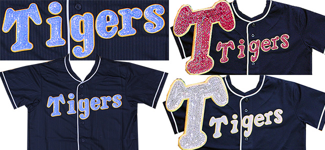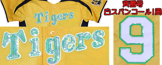 Tigersをスパンコール刺繍で飾りました。色も自由に選べます。スパンコール刺繍は、洗濯しても取れないです!