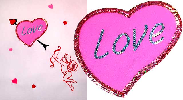 スパンコール刺繍のハート・スパンコール刺繍のLOVEの文字、きれいです。