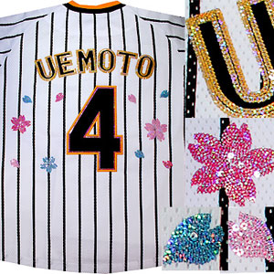 ユニフォームをスパンコール刺繍で飾りました。色も自由に選べます。スパンコール刺繍は、洗濯しても取れないです!