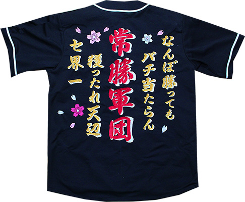 選手名をアルファベットや漢字で刺繍して、背番号周りに桜刺繍、風船刺繍、ハートの刺繍で華やかに