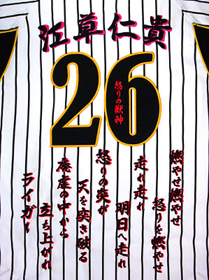 猛虎列伝のページは、阪神タイガースで歴史をつくった選手・指導者の応援ユニフォーム刺繍を掲載しております。