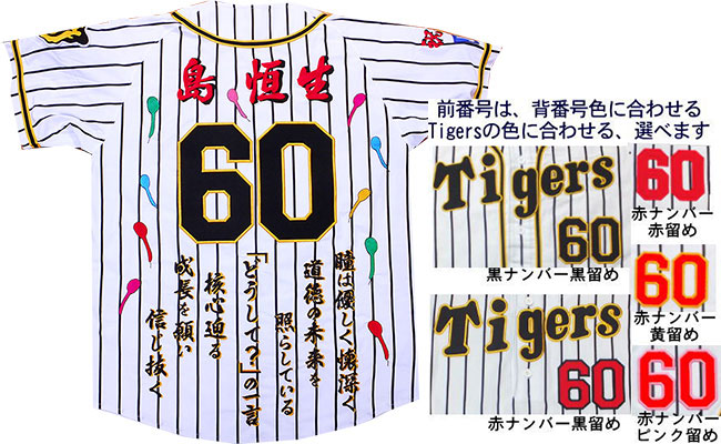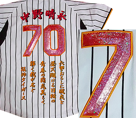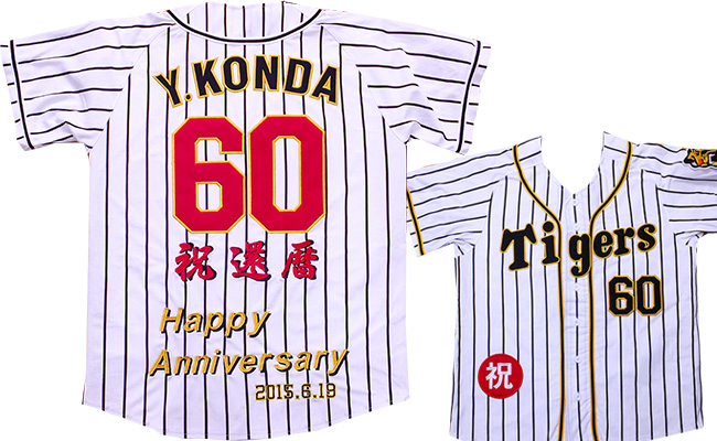 阪神タイガース刺繍・還暦・古希・長寿祝いユニフォーム刺繍制作例