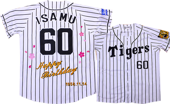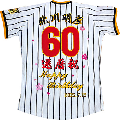 還暦・古希・長寿祝い・銀婚式・金婚式の大切な記念日に、阪神タイガース刺繍をユニフォームにオリジナルメッセージを刺繍で演出いたします。プレゼントにイエローユニのサプライズ刺繍とても大好評で、全国からお祝い刺繍、ご注文いただいております。刺繍工場直販ですので、迅速に対応できます。ご相談お問合せお待ちしております。