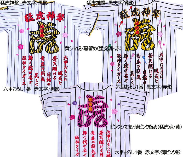 生涯虎命、虎の女神、猛虎魂、常勝猛虎、連戦連勝、生涯虎命、猛虎神撃、獣王無敵、優勝祈願、猛虎、虎命、虎吉、虎姫、参考にして、オリジナルユニ刺繍で”熱き思いを”を刺繍で!